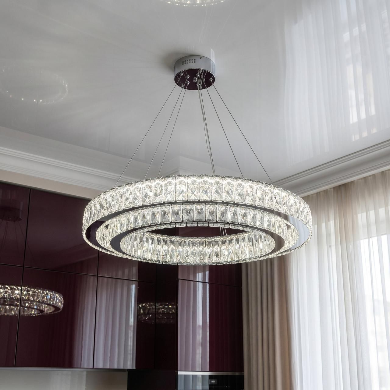 Столовая: Размещение над обеденным столом для создания торжественной атмосферы во время приемов (рекомендуемый подвес 60-80 см от столешницы).