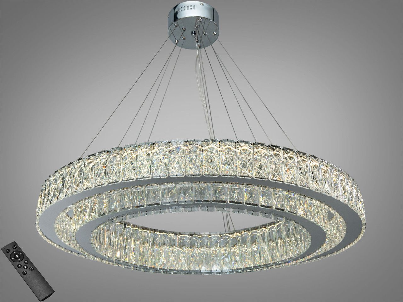 Подвесная хрустальная люстра с двумя кольцами 152W (Chrome)