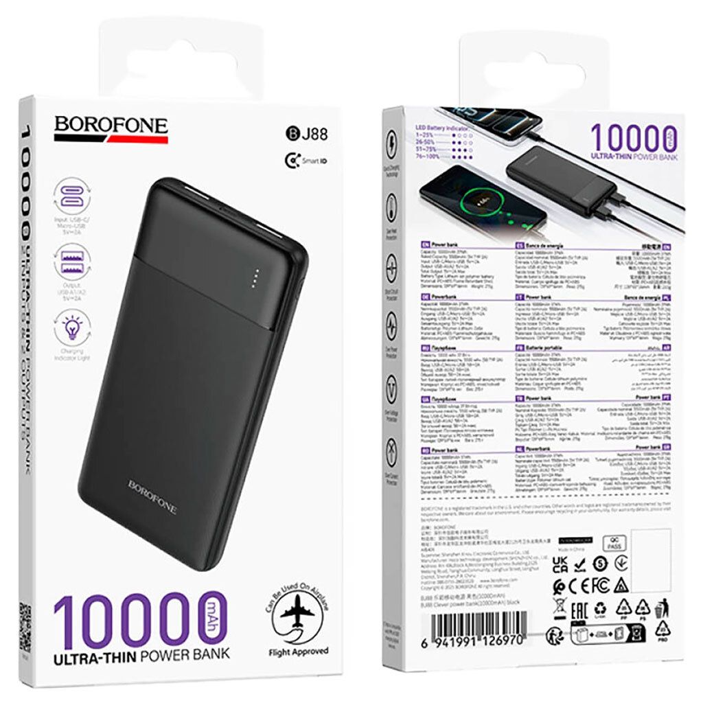 BOROFONE BJ88 Clever — это компактный и практичный внешний аккумулятор, созданный для повседневного использования. Модель сочетает оптимальную ёмкость, удобство эксплуатации и надежную защиту, позволяя всегда оставаться на связи дома, в дороге или на работе.
