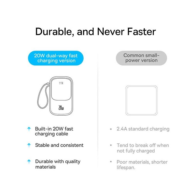 BASEUS Qpow Pro — это современный и функциональный внешний аккумулятор с поддержкой быстрой зарядки, цифровым дисплеем и встроенным кабелем с разъемом Lightning. Устройство сочетает компактность, универсальность и высокую эффективность, обеспечивая стабильную зарядку смартфонов и других гаджетов в любых условиях.