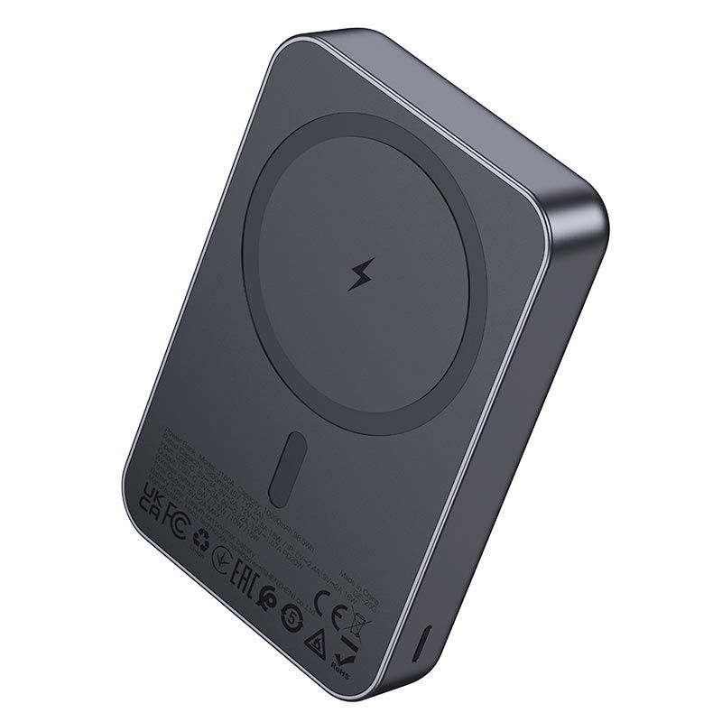 Главной особенностью модели является магнитная беспроводная зарядка, совместимая с технологией MagSafe, которая обеспечивает надежную фиксацию повербанка на задней панели iPhone. Это позволяет заряжать смартфон без кабелей, не прерывая использование устройства. Компактный корпус, небольшой вес и продуманная конструкция делают повербанк удобным для постоянного ношения в кармане, сумке или рюкзаке.