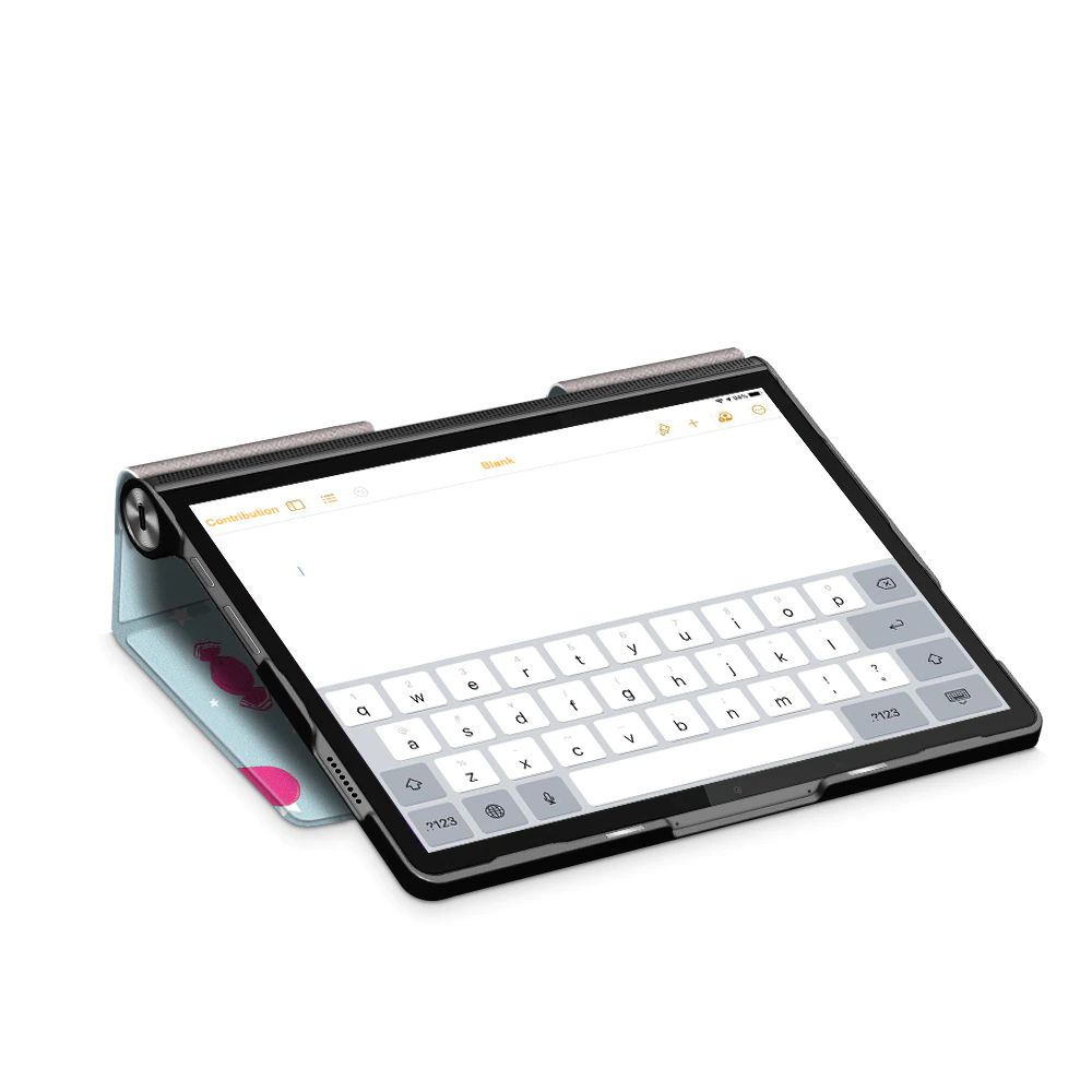 Найважливішим доповненням для купленого вами планшета є чохол, адже з ним ваш планшет буде зашитий від сколів та подряпин. За статистикою поланшети в чохлі ушкоджуються вп'ятеро рідше, а серйозні каліцтва зовсім виключають. Ви зобов'язані купити чохол для нового гаджета Lenovo Yoga Tab 11(2021). Чохол для Lenovo Yoga YT-X706F YT-X706X виконаний з пресованої шкіри, це дуже якісний матеріал, так як основу матеріалу складає шкіряні обрізки і труха, далі додаються невеликий відсоток синтетичних складових, щоб матеріал був цілісним і міцним, таким чином виходить шкіряний матеріал не дорогий. Тому у нас можна купити чохол Lenovo Yoga Tab 11 2021 дешево. Малюнок найцікавіше в цій серії, жартівливі малюнки для дітей та дорослих на чохлі Lenovo Yoga Tab 11 порадує та підійме настрій вам та вашій дитині. Варто сказати про виконання чохла, на задній частині обкладинки є отвір для камери. Усередині камери також відкриті для роботи, крім цього всі слоти та кнопки відкриті та доступні. В основі чохла йде пластиковий бампер, який добре захищає гаджет на периметрі. Конструкіця у вигляді підставки дозволяє встановити Lenovo Yoga Tab 11(2021) YT-X706 у чохлі на стіл для перегляду відео або набору тексту.