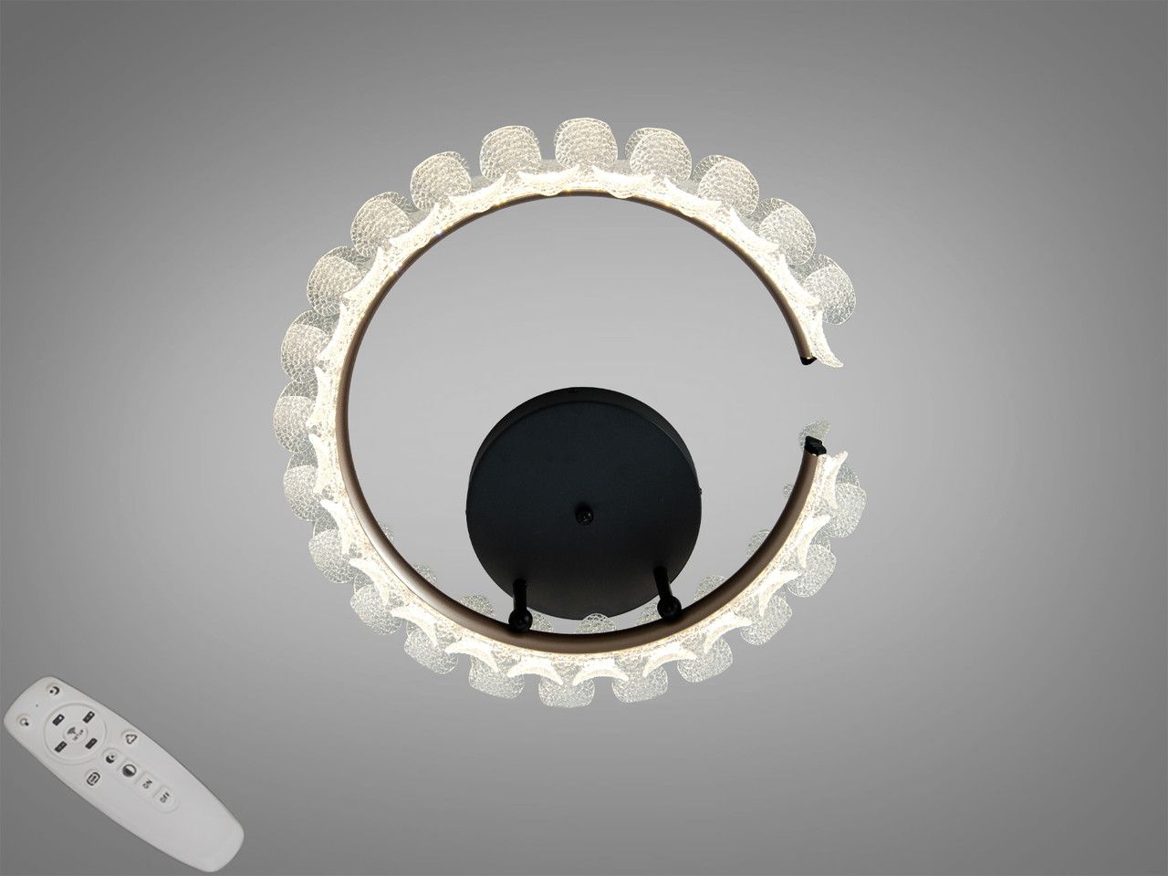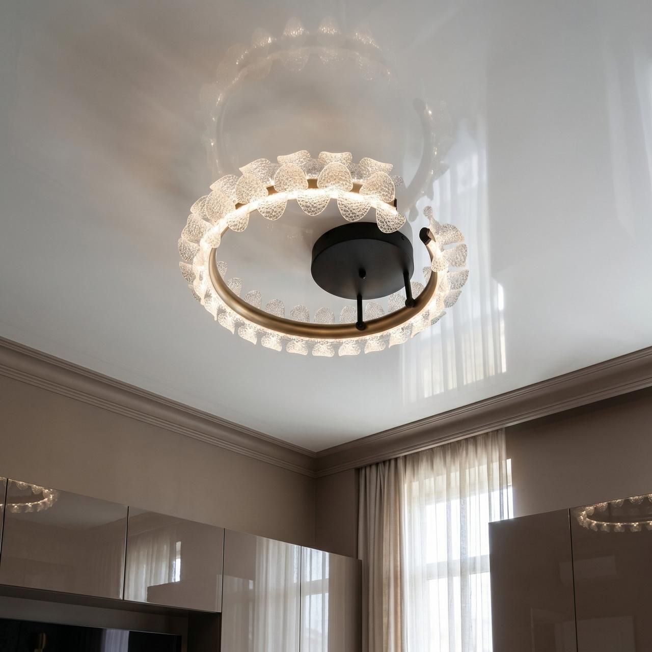 Декоративное рассеивание: Текстурированные «лепестки» преломляют свет, создавая мягкий рисунок на потолке и стенах без резких теней.