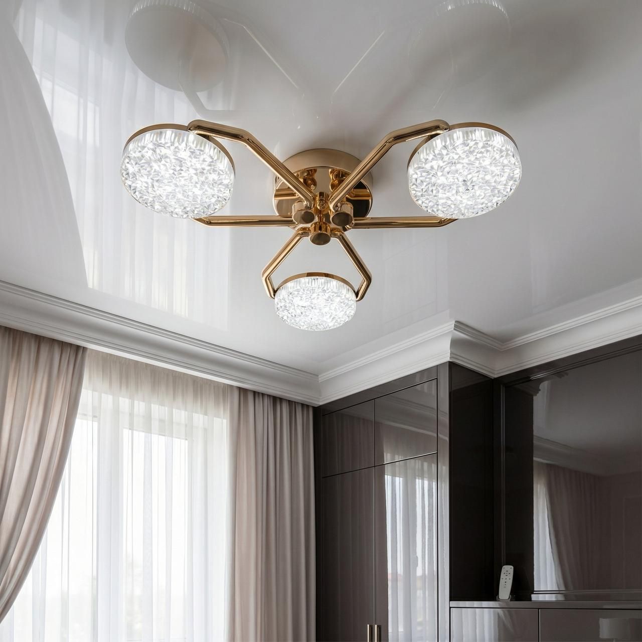 Кристаллический акрил: Фактурные плафоны эффективно рассеивают лучи, предотвращая ослепление и создавая мягкие световые акценты.