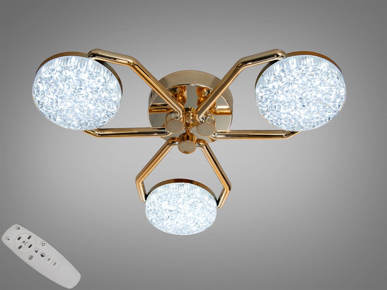 Светодиодная припотолочная люстра LED с пультом, три плафона, цвет золото