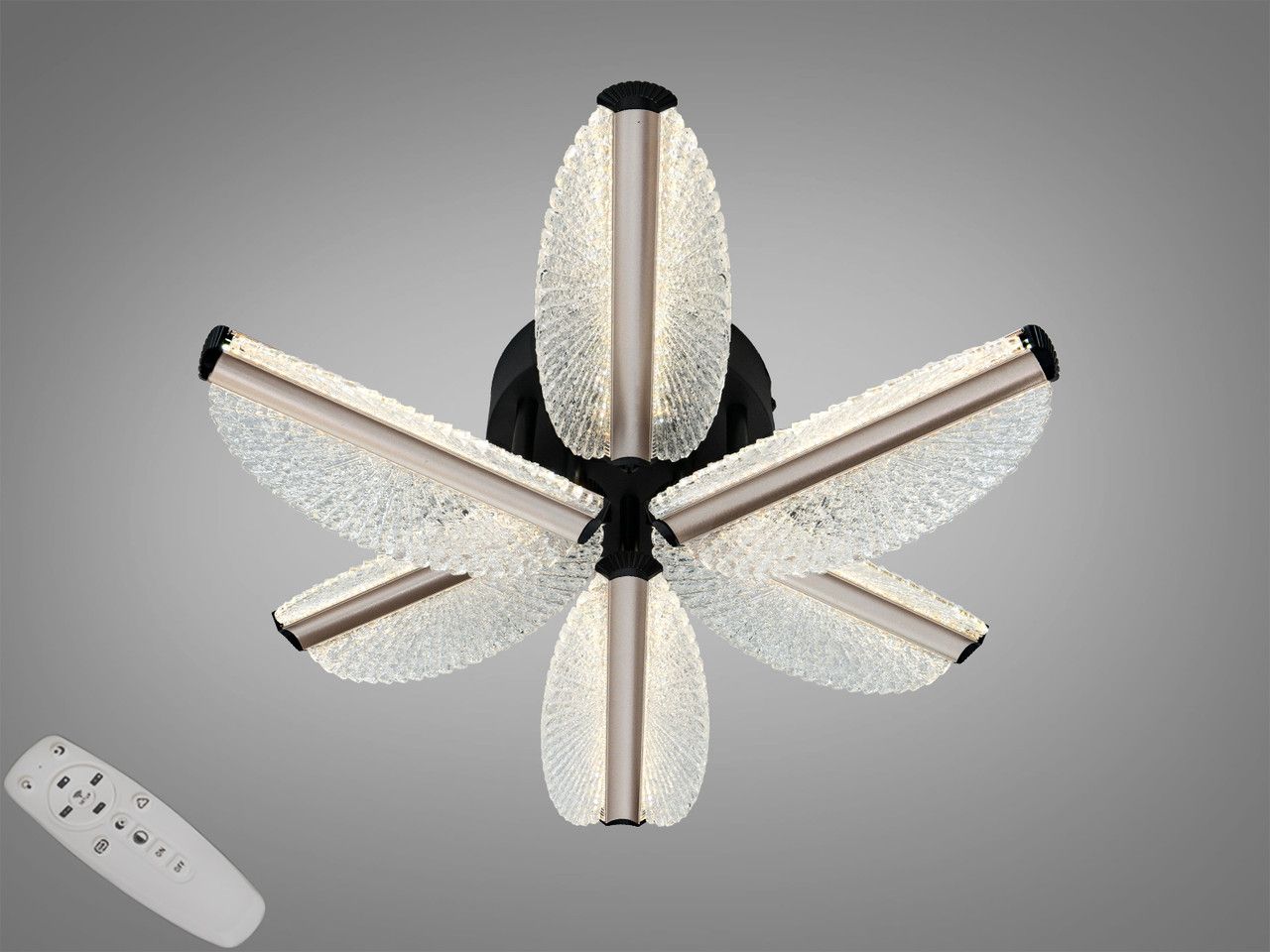Светодиодная люстра Хайтек с пультом, пять лепестков, черный и золото шампань