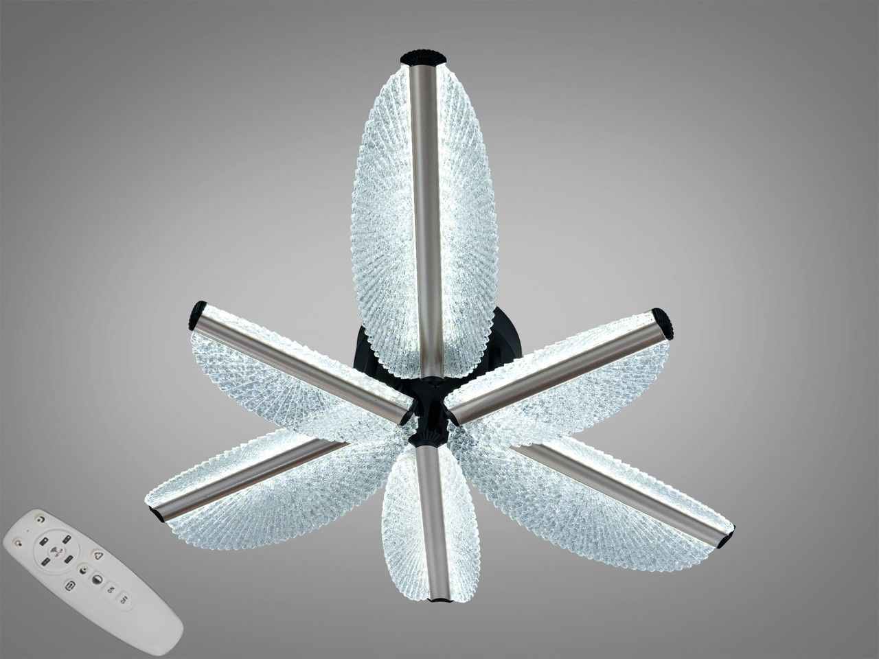 Встроенный диммер: Управление яркостью с пульта ДУ позволяет использовать люстру как основной источник света или в режиме ночника.