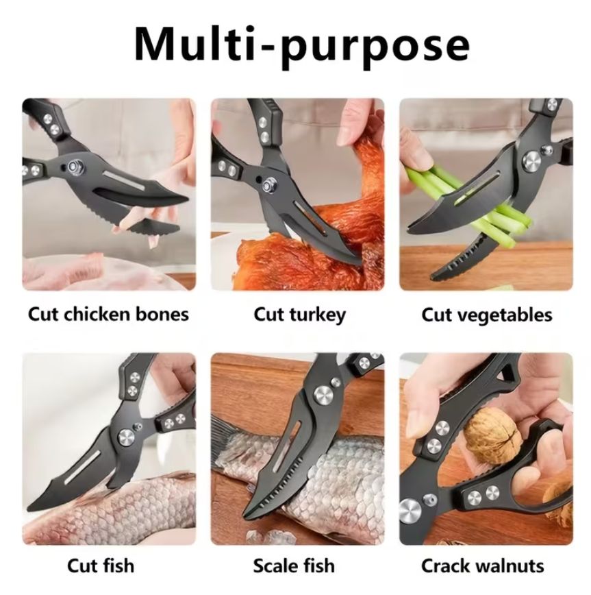 Сверхпрочные кухонные ножницы из нержавеющей стали - Многофункциональные ножницы для птицы и барбекю с эргономичными ручками, острые лезвия для курицы, мяса и многого другого - Идеально подходят для дома, ресторана и использования на открытом воздухе, безопасный для пищевых продуктов дизайн, кухонные ножницы, ресторанное оборудование