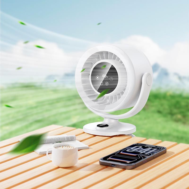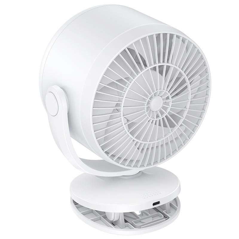 HOCO HX608 — это универсальный портативный вентилятор с удобным клипсовым креплением, предназначенный для комфортного охлаждения дома, в офисе или в дороге. Благодаря продуманной конструкции устройство легко фиксируется на столе, полке, спинке кровати или других поверхностях, обеспечивая стабильную работу без необходимости держать его в руках.