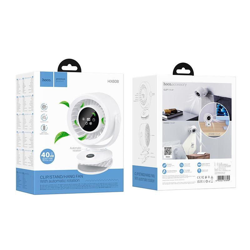 Вентилятор HOCO clip mount fan HX608 |5 Levels, 2.5.2-8h, 40dB| white