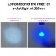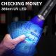 - УФ-свет эффективно выделяет вещества с флуоресцентными добавками, что делает проверку быстрой и наглядной