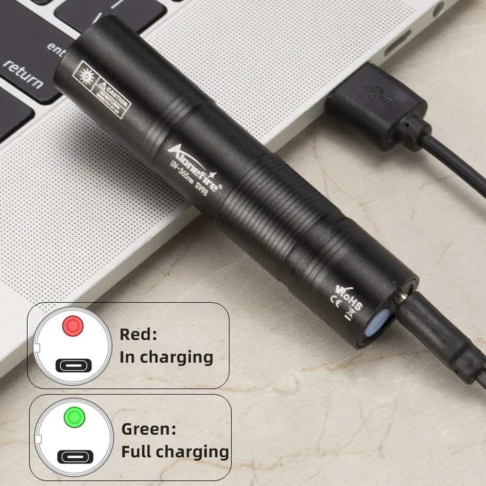 Фонарик ультрафиолетовый Alonefire SV98 365nm (77*17mm) на аккумуляторе с зарядкой по Type-C Black
