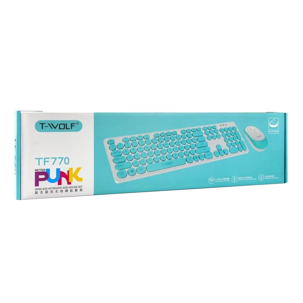 Современный комплект TWolf TF770 сочетает в себе стильный дизайн, надежность и удобство повседневного использования. Устройства выполнены в едином ретро-стиле с округлыми клавишами и гармоничной двухцветной расцветкой, благодаря чему отлично вписываются как в домашний интерьер, так и в офисное пространство. Беспроводное подключение обеспечивает свободу движений и аккуратное рабочее место без лишних проводов.