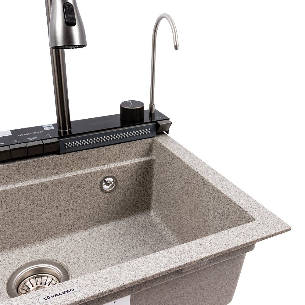 Гранитная мойка VALESO 6846 IRENA — это премиальное решение для современной кухни, сочетающее инновационные функции, стильный дизайн и максимальную комплектацию. Матовое покрытие цвета серый придает изделию сдержанный и универсальный внешний вид, отлично вписываясь в различные интерьеры.
