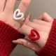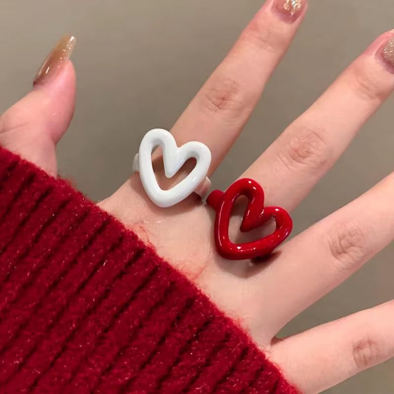 Кольцо сердце эмалированное в форме сердца стиль Y2K с эффектом капельного масла регулируемое бело-красное