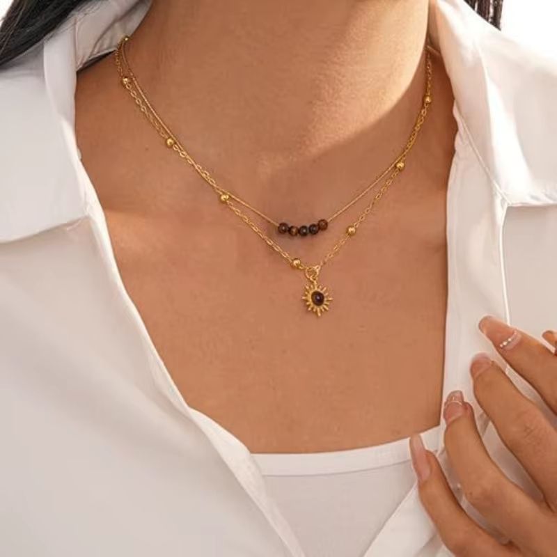 Подвеска двухслойная с тигровым глазом с изображением золотистого подсолнечника кулон солнце подсолнечник ожерелье-чокер