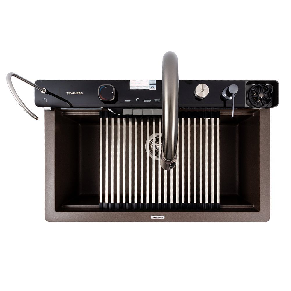 Гранитная мойка VALESO 7546 EVANORA — это современное и многофункциональное решение для кухни, сочетающее стильный дизайн и максимальный комфорт в использовании. Матовое покрытие цвета тёмная скала придает изделию глубокий и выразительный внешний вид, отлично сочетаясь с современными интерьерами.