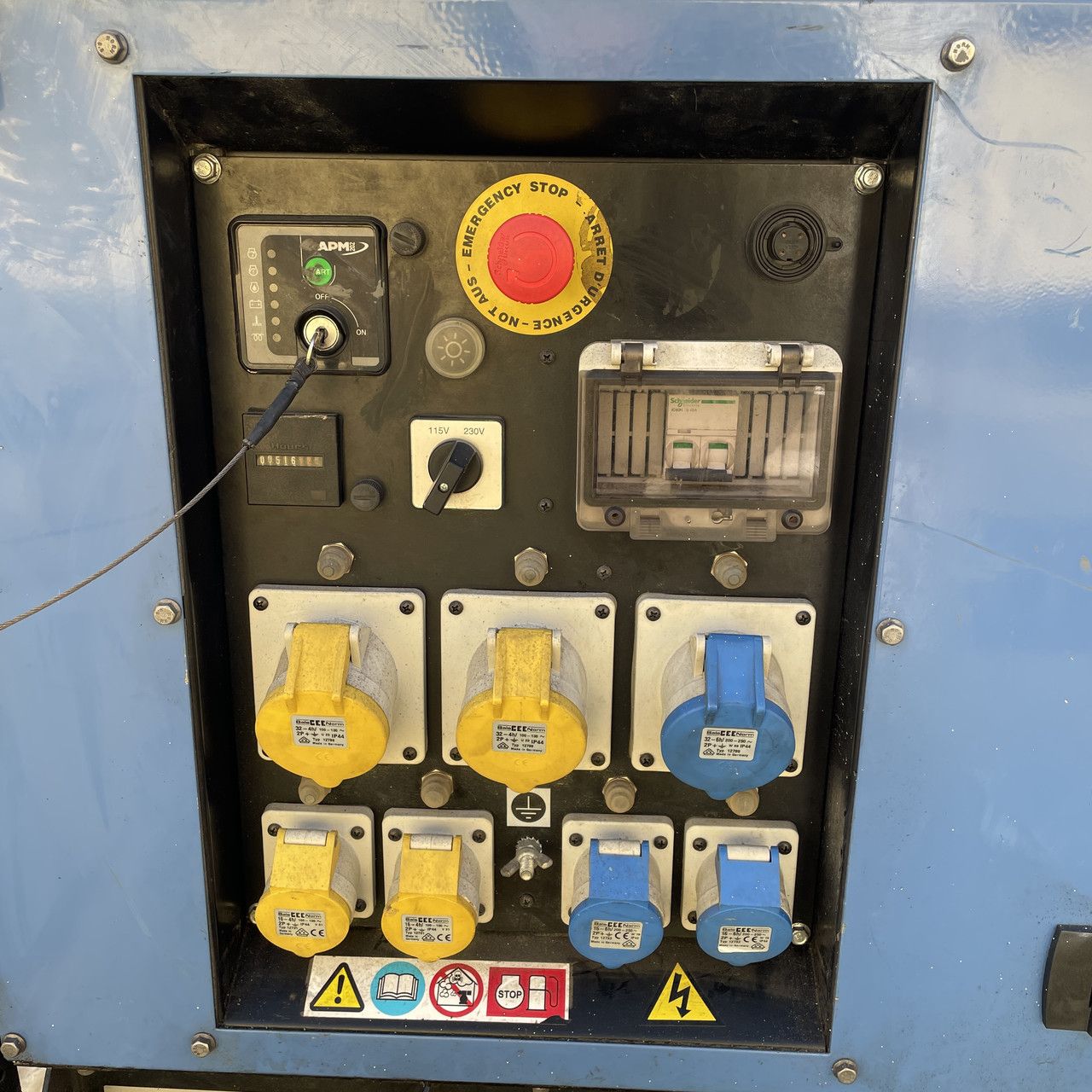 Панель управления: интуитивно проста, доступна неопытному пользователю. На нее выведена кнопка запуска генератора, основные индикаторы работы (счетчик проработанного часа (моточасов)), розетки – 2 шт. по 16 амперных, 1 розетка на 32 Ампера, предохранитель на розетки, заземление, комплекс управления MODYS.