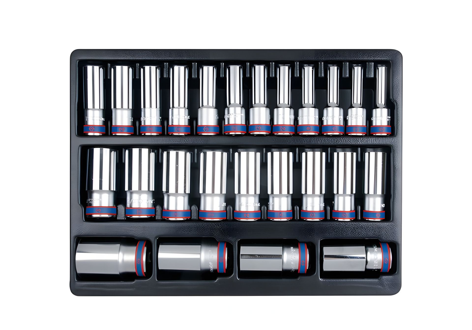 25PC.1/2"DR.DEEP SOCKET METRIC 12PT FOR TOOL TROLLEY KING TONY 9-4235MR