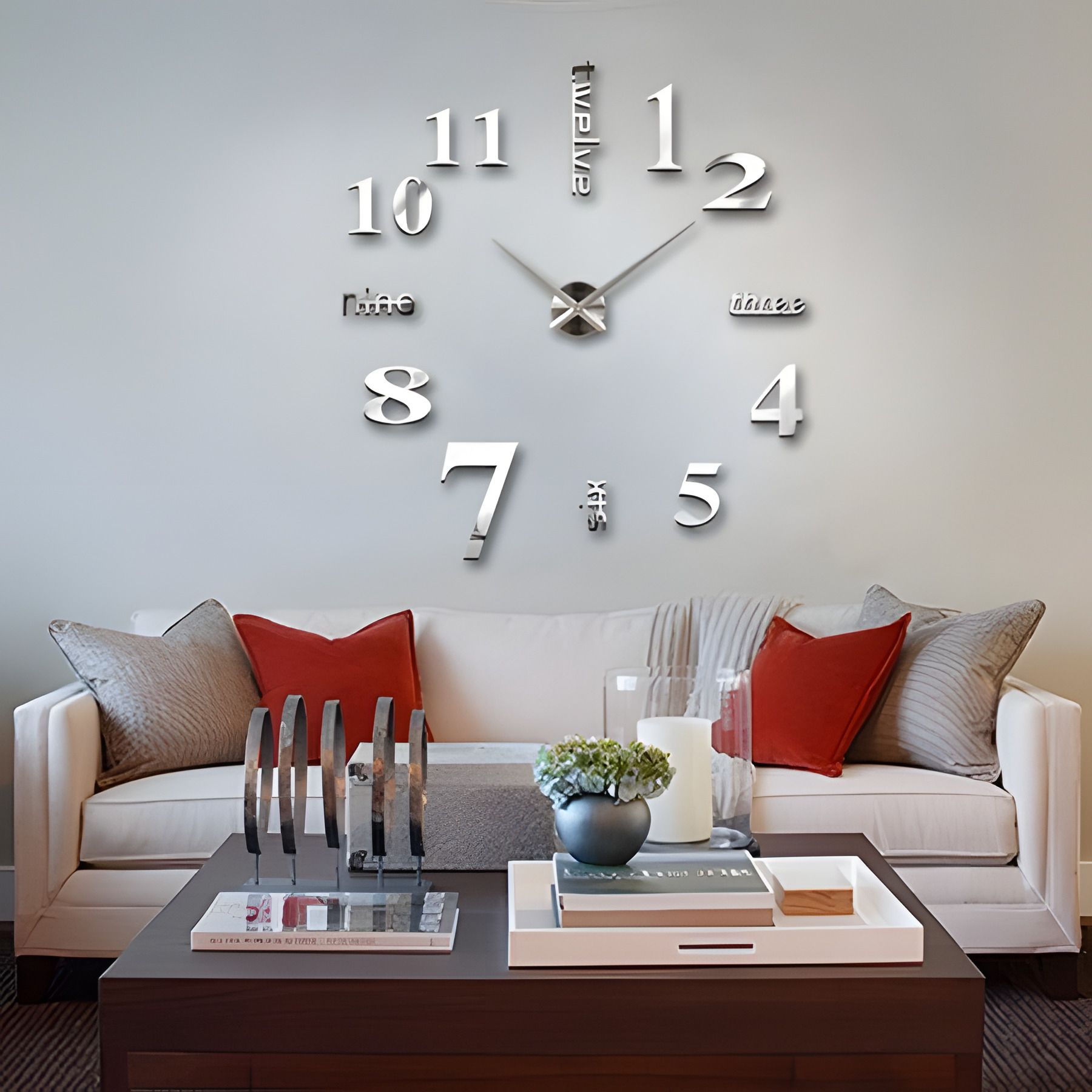 Настенные 3D часы Timelike™ 100 см, большие надписи-G серебристые