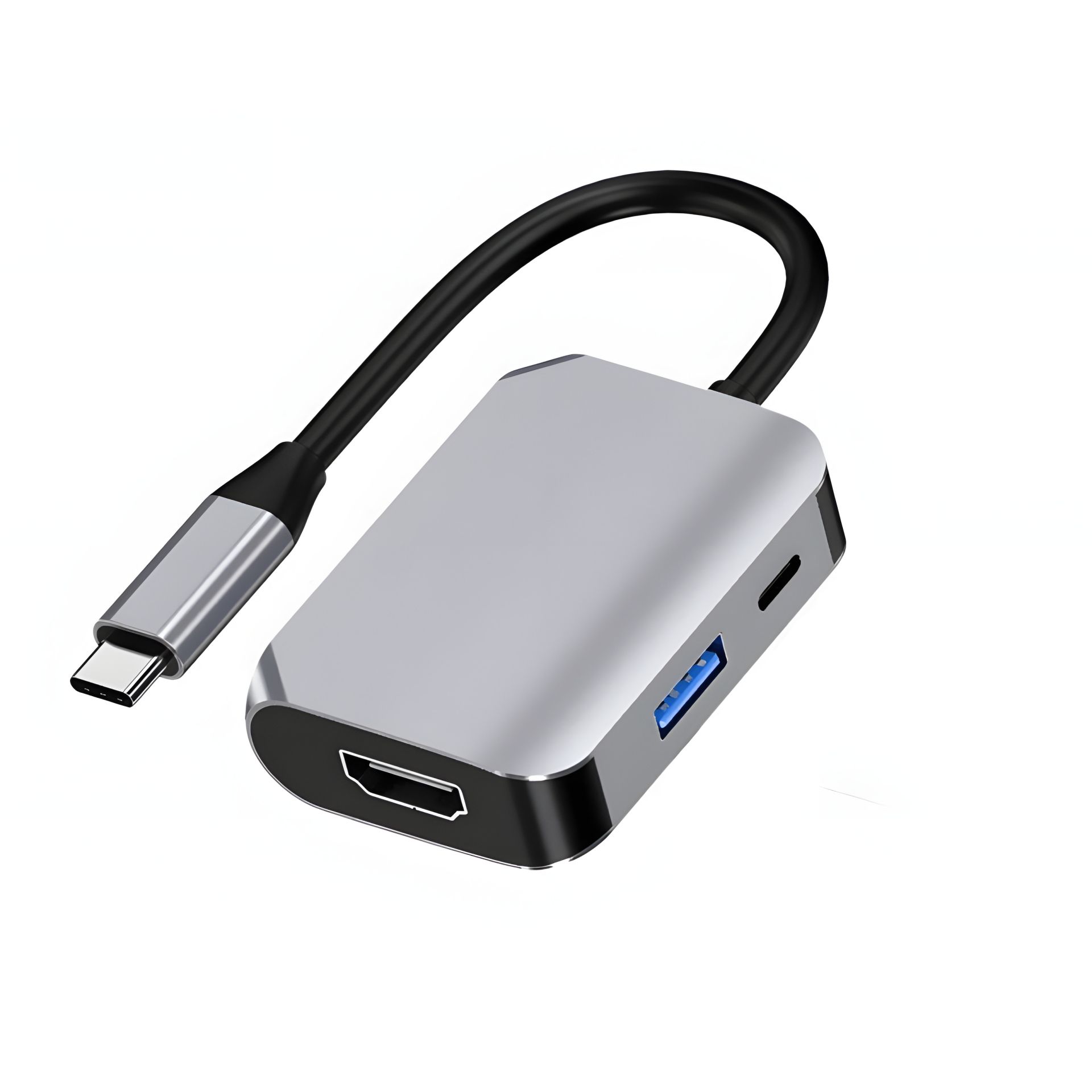 Многофункциональный адаптер USB-C 3-в-1 оснащен портом HDMI для передачи изображения 4К, высокоскоростным USB 3.0 для флешек, мышей и других устройств, а также портом PD для зарядки мощностью до 60 Вт.