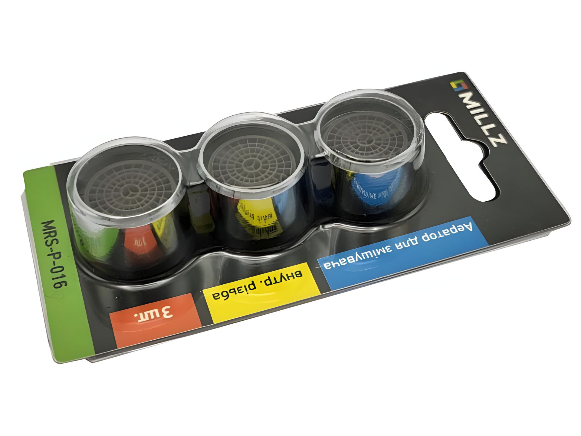 Аератори для змішувача внутрішня різьба М24 Millz MRS-P-016, набір з трьох штук. Аератор призначений для установки на край або всередину виливу, розділяє потік води на маленькі струмені і насичує їх бульбашками повітря. Аератори в даному наборі мають внутрішню різьбу М24.