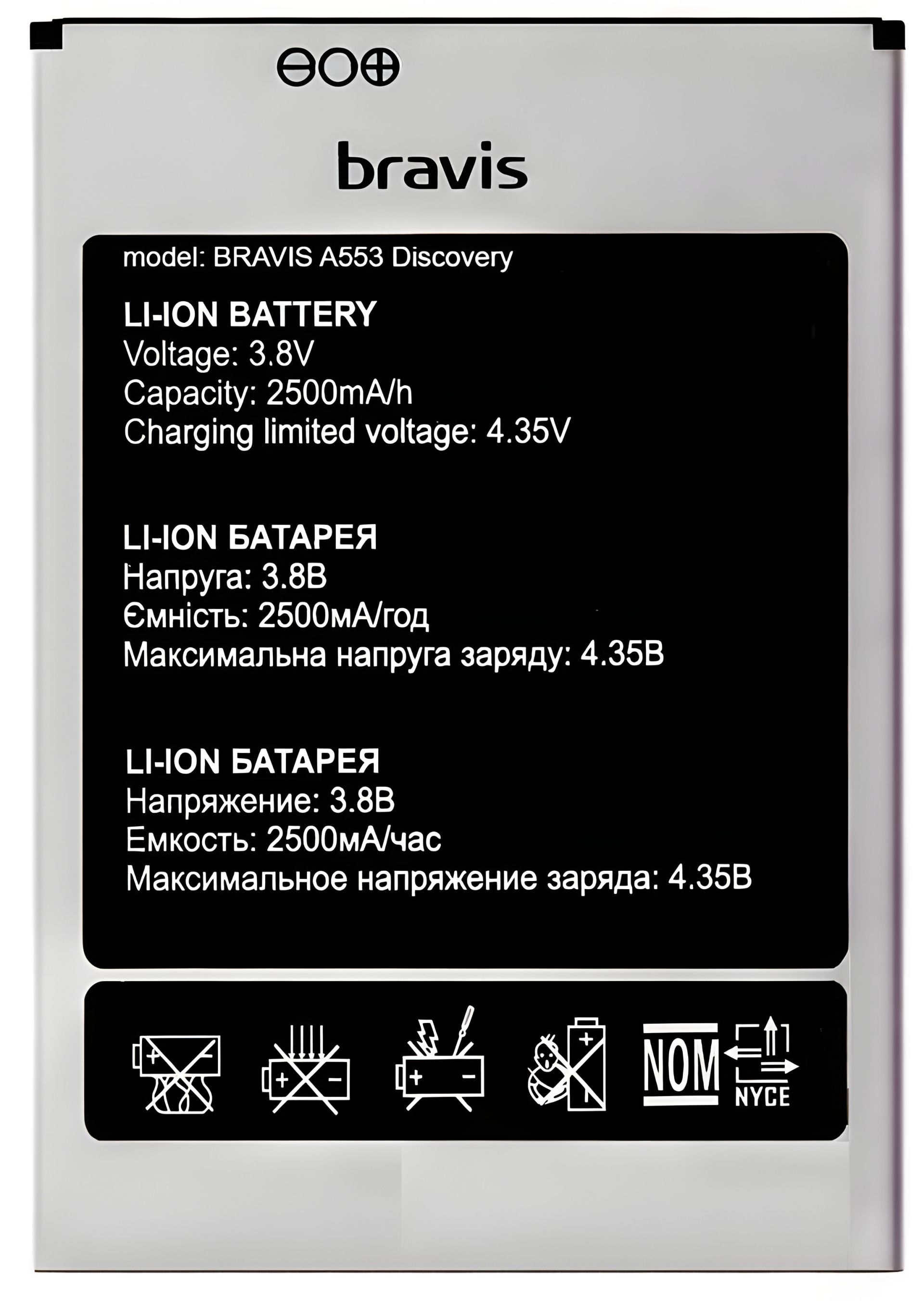 Для моделей: S-Tell M555, Umi Rome Для моделей Bravis: A553 Discovery Маркировка АКБ: Bravis A553 Discovery, S-Tell M555, Umi Rome