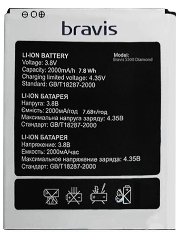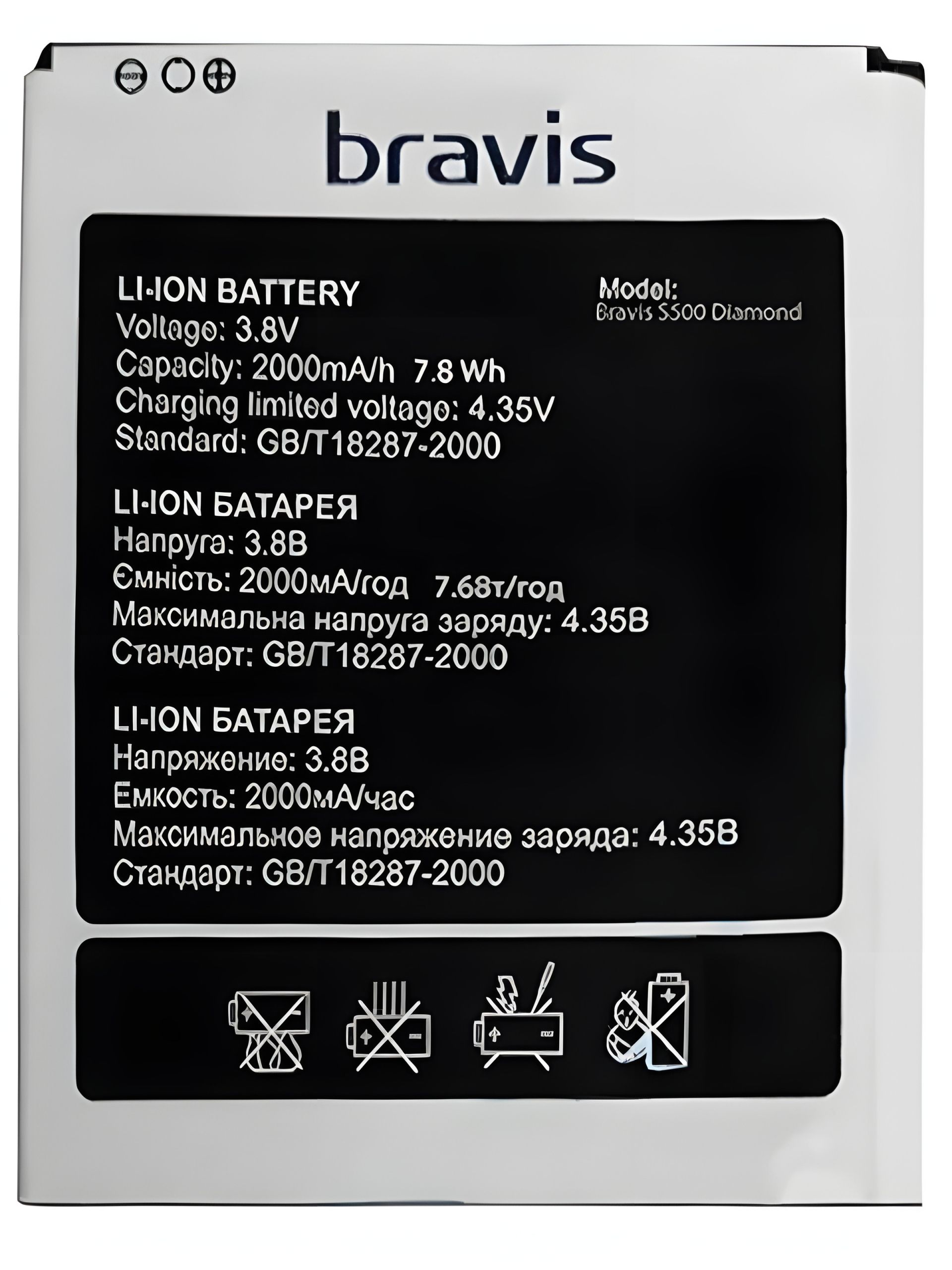 Для моделей Bravis: S500 Diamond Маркировка АКБ: Bravis S500 Diamond