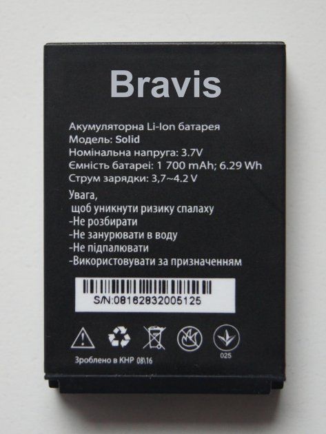 Аккумулятор для Bravis Solid (1700 mAh) [Original PRC] 12 мес. гарантии