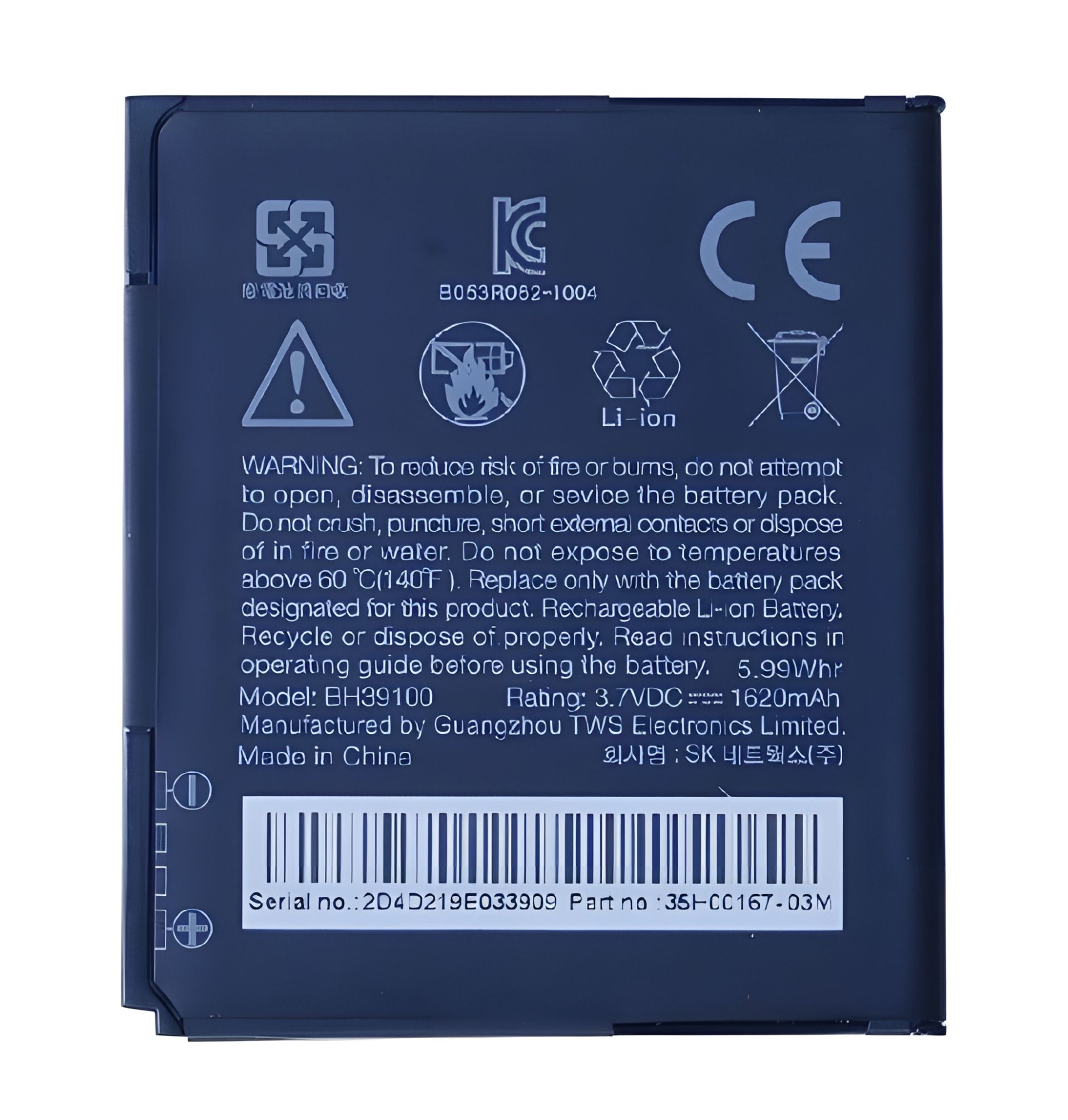 Для моделей HTC: X710a Vivid, X710e Raider 4G (G19), G20, Holiday, Vivid 4G Маркировка АКБ: BH39100