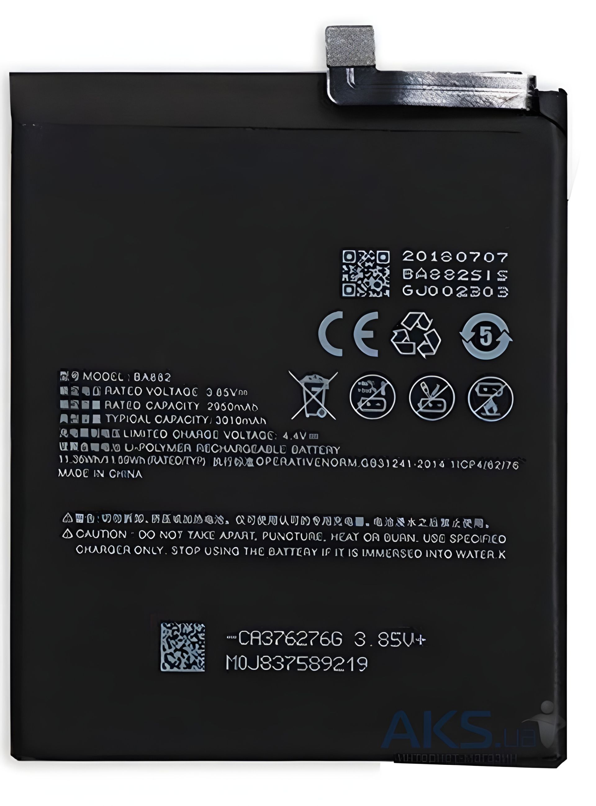 Аккумулятор для Meizu BA882 / Meizu 16 (16th / M822) - 3000 mAh [Original PRC] 12 мес. гарантии