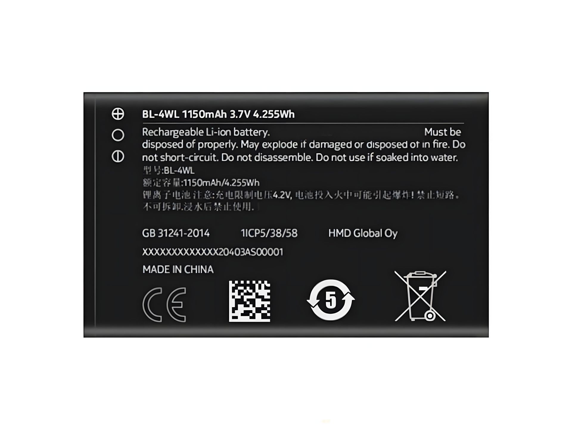 Аккумулятор для Nokia 225 4G (2020) / TA-1321, TA-1296, TA-1279, TA-1276, TA-1282 / BL-4WL / BL-4UL 1150 mAh [Original PRC] 12 мес. гарантии