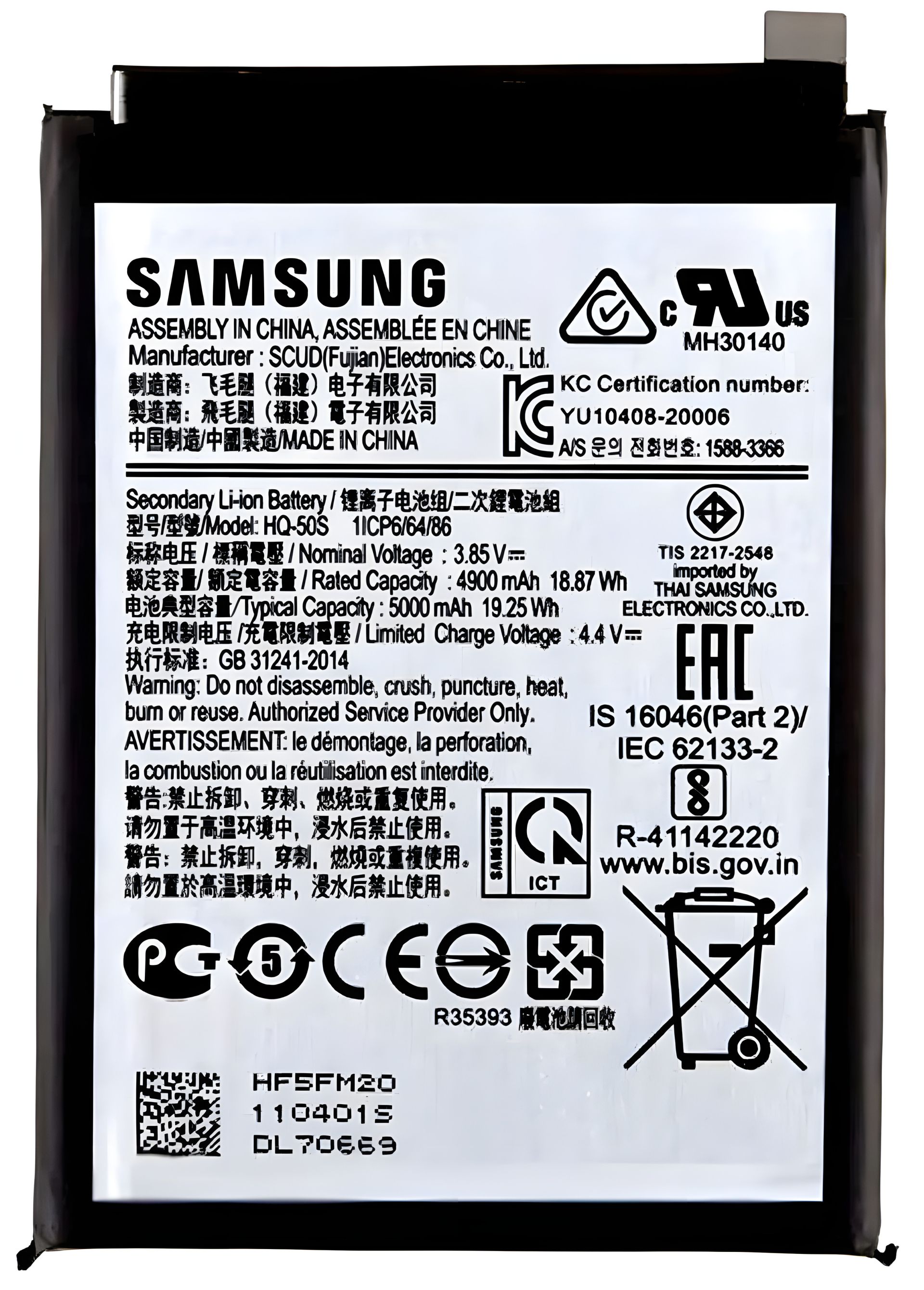 Samsung HQ-50S A025 Galaxy A02S, F02S, A03S аккумулятор (5000 mAh) [Original PRC] 12 мес. гарантии