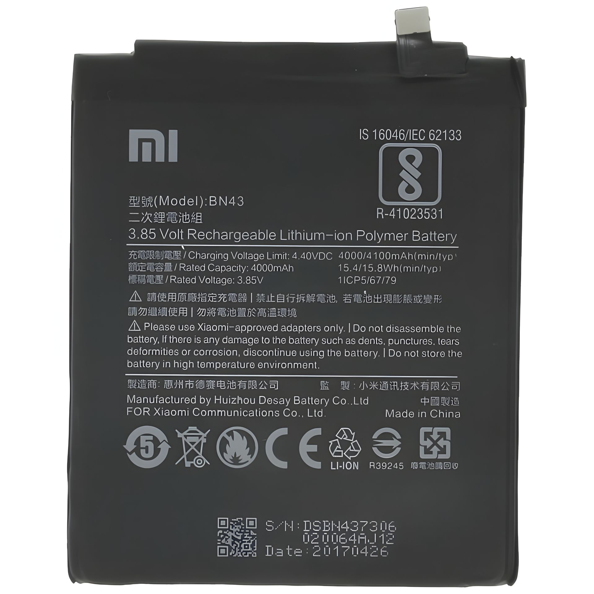 Для моделей Xiaomi: Redmi Note 4x, Redmi Note 4 Global Snapdragon Version Маркировка АКБ: BN43