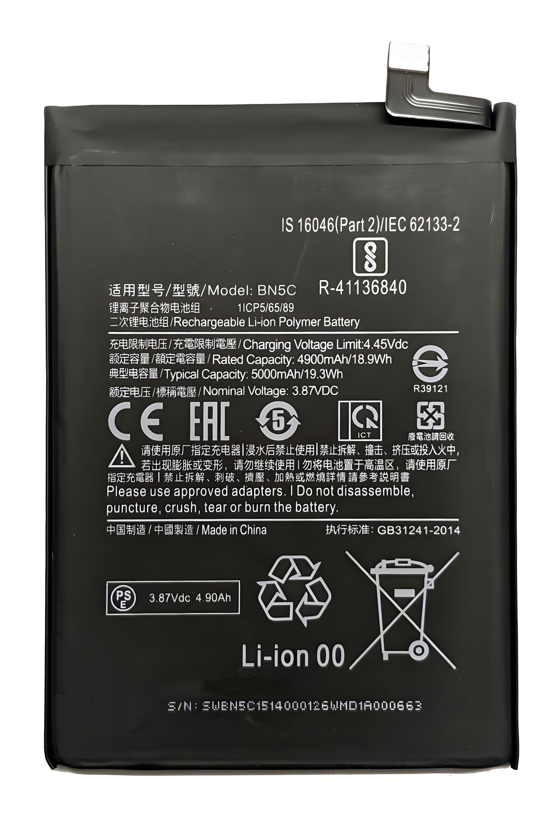 Аккумулятор для Xiaomi BN5C - Poco M4 Pro, Redmi Note 11T, 5000 mAh [Original PRC] 12 мес. гарантии