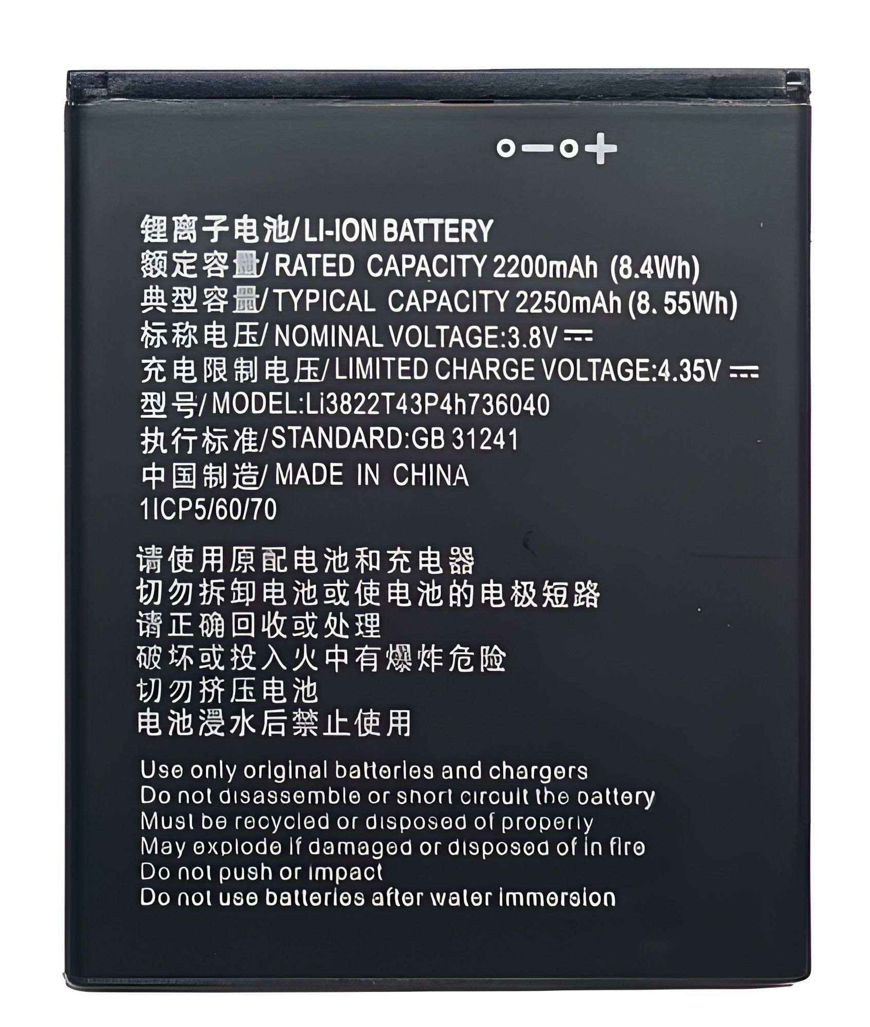 Маркировка АКБ: Li3822T43P4h736040