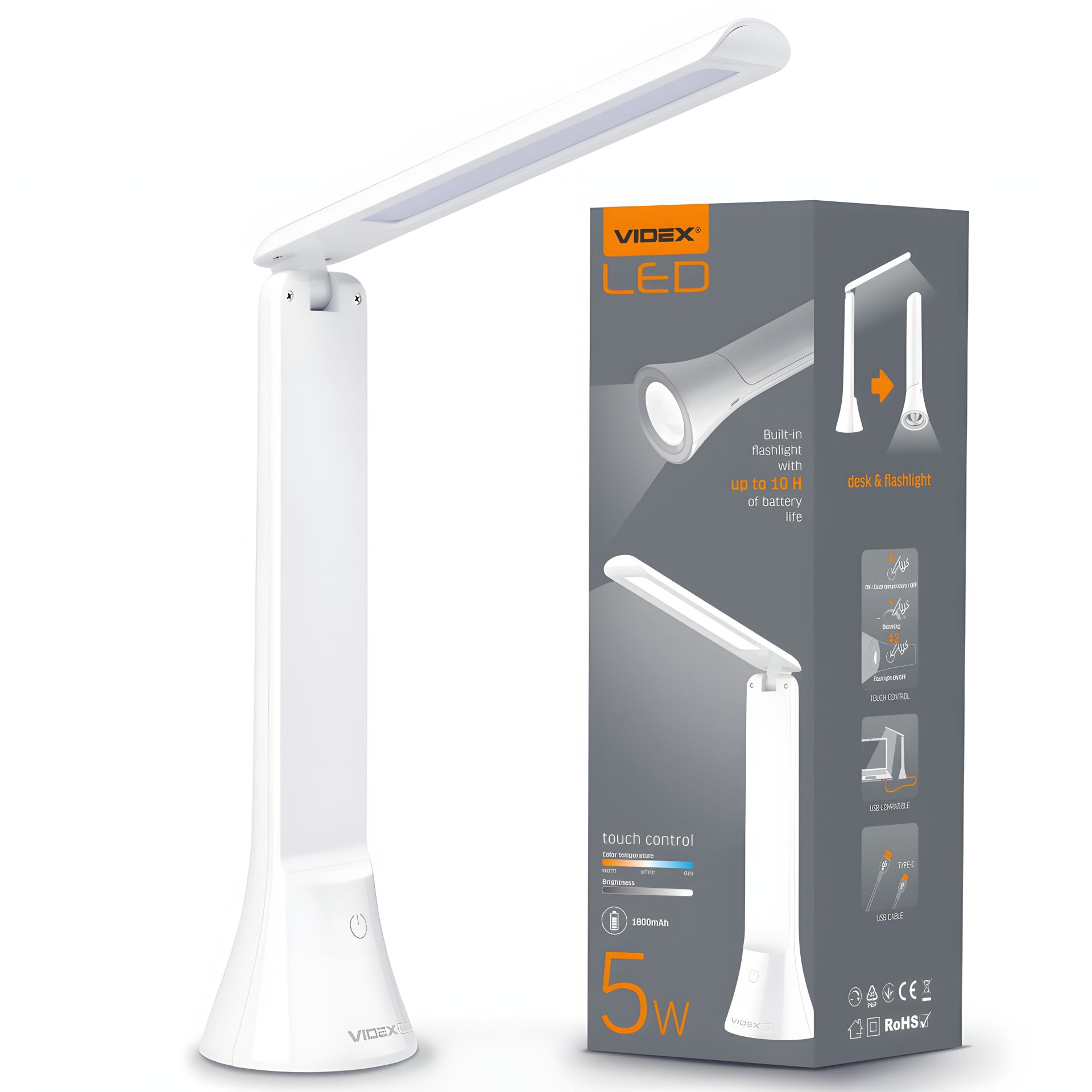 Аккумуляторная настольная лампа-фонарик VIDEX VL-TF11W 5W 3000-5500 с регулировкой яркости и температуры света