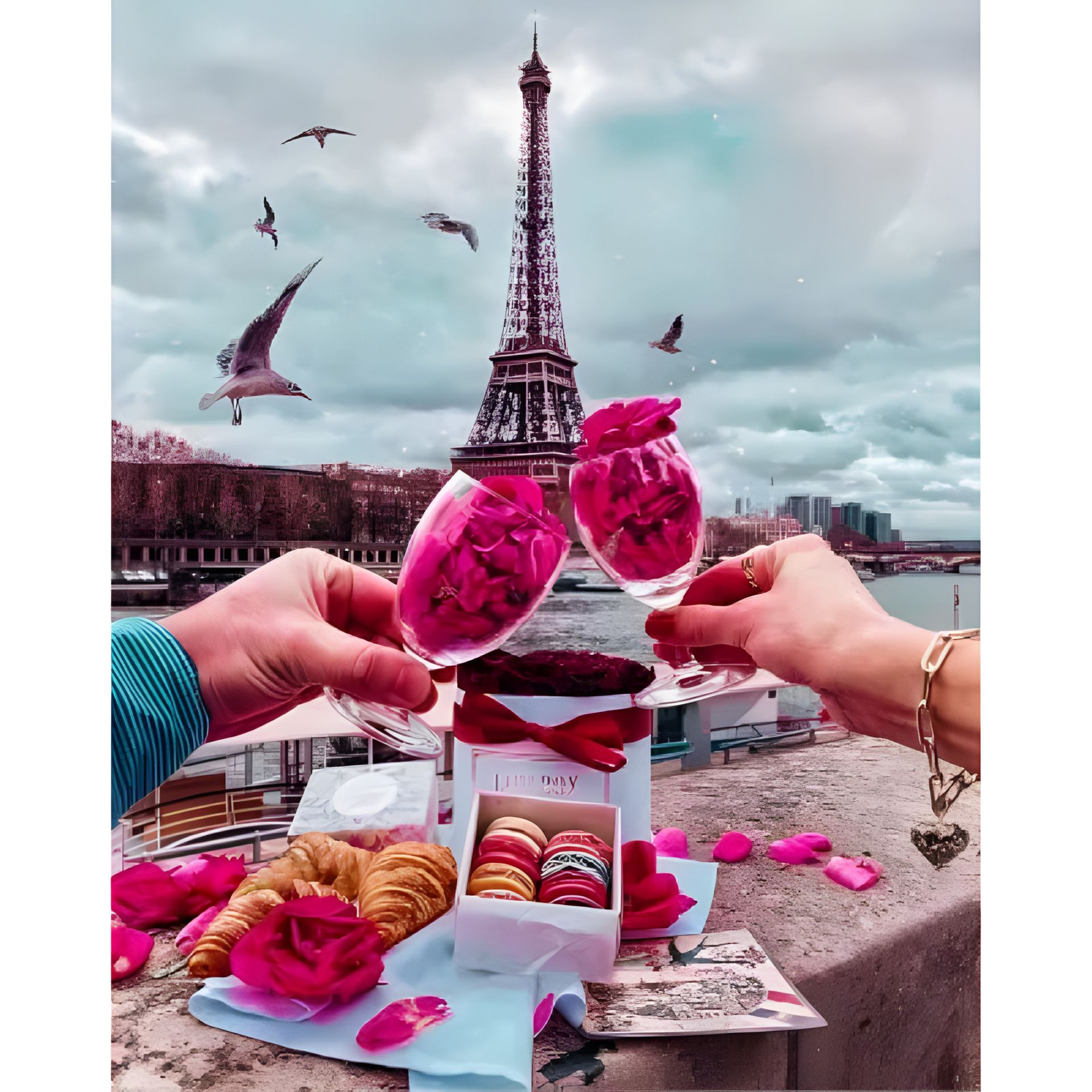 Алмазная мозаика "Бокалы и Париж" 40х50 см, ColorArt SP088