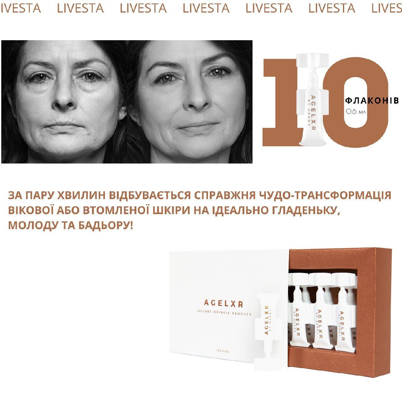 Антивозрастной эликсир мгновенного действия от морщин AGELXR, 10 ампул по 0,6 мл