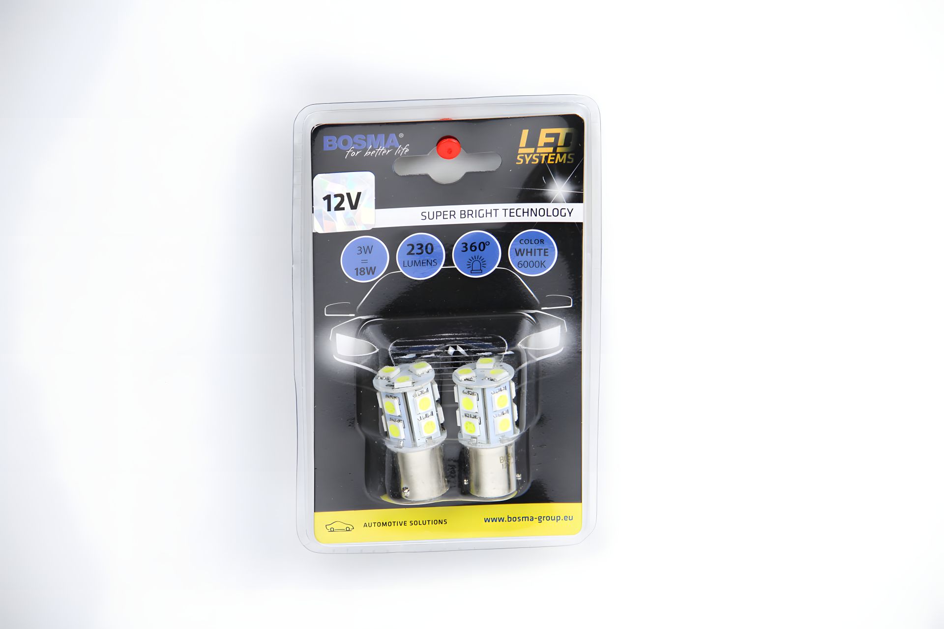 Автомобильная лампа BA15S LED 12V 13xSMD 5050 LED WHITE 2 шт., BOSMA (3055)