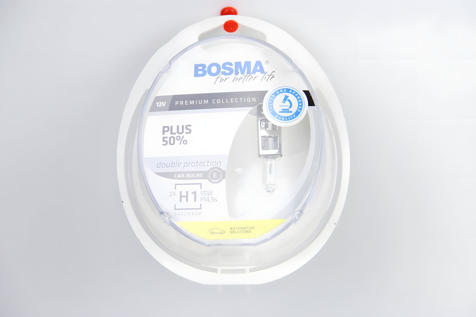Автомобильная лампа H1 PLUS 50% 12V 55W P14,5S Упаковка 2шт, BOSMA (4070)