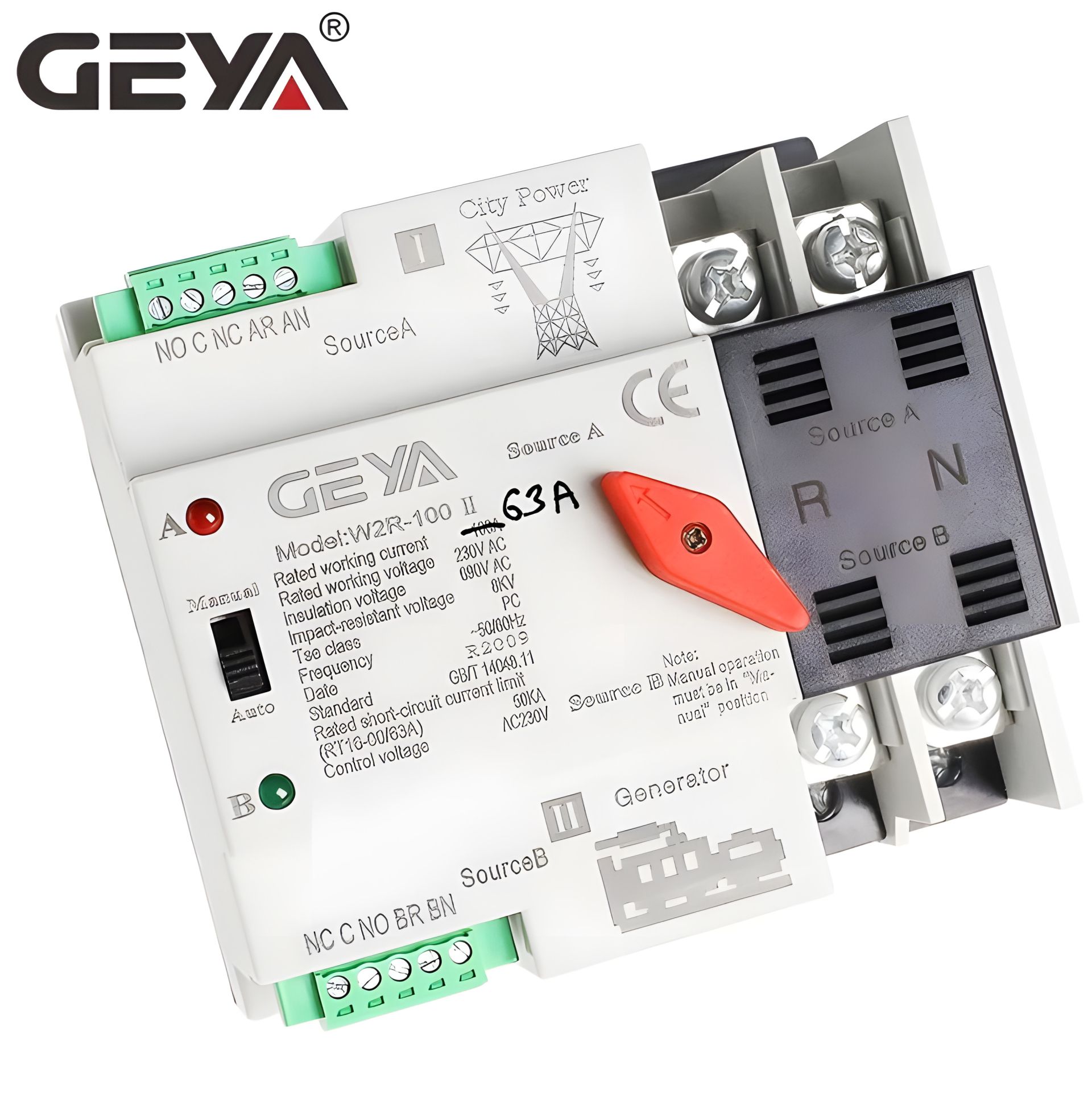На din-рейке. Geya фирма, модель W2R-100, 2p 63 А.. Однофазный (переключатель с фазы на фазу).