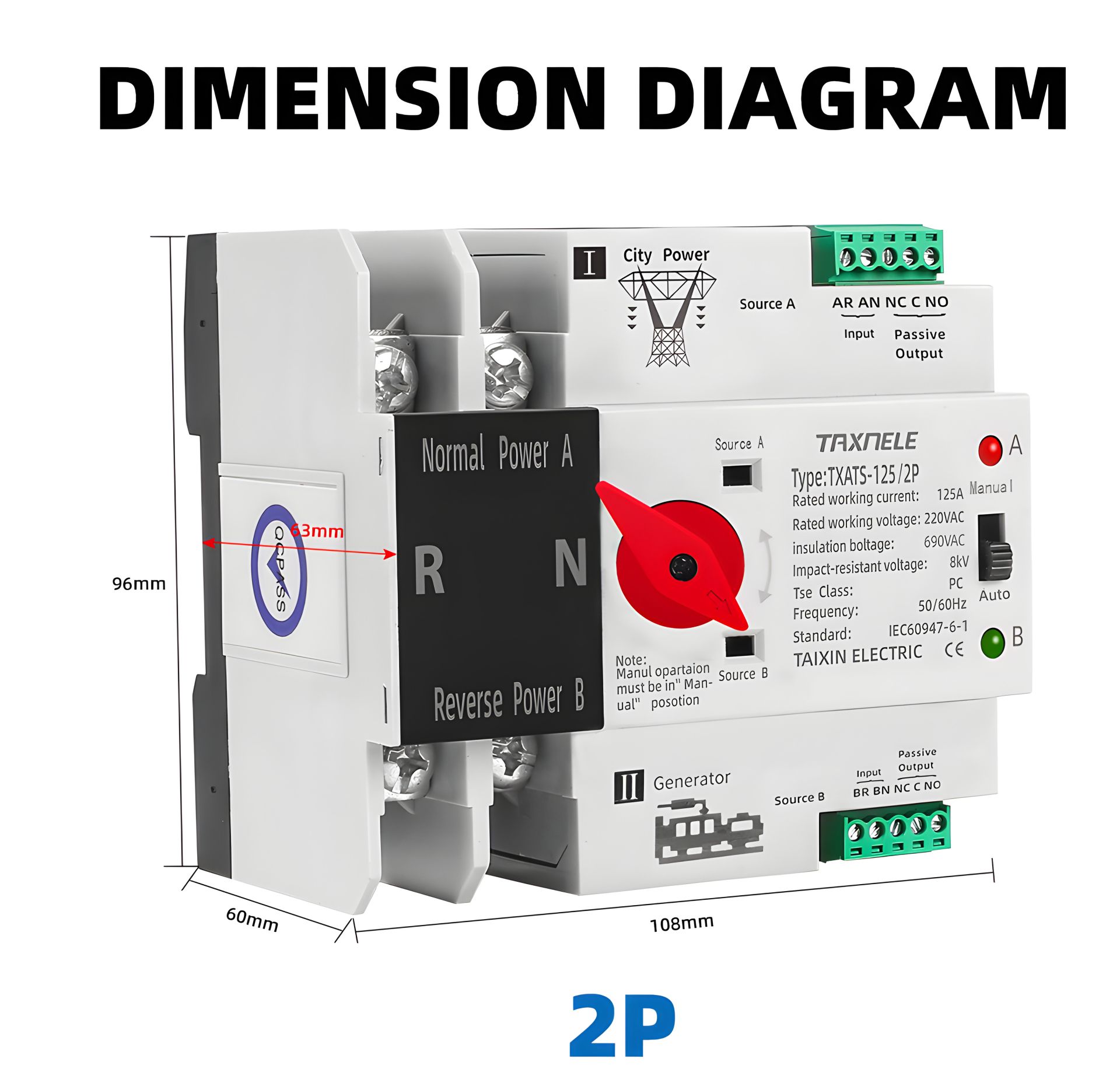 На din-рейке. Texnele фирма, модель TXATS-63/2p до 63А. Однофазный.