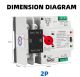 Размеры для 2P: 107.5*78,5*96. Время срабатывания 50 мс.
