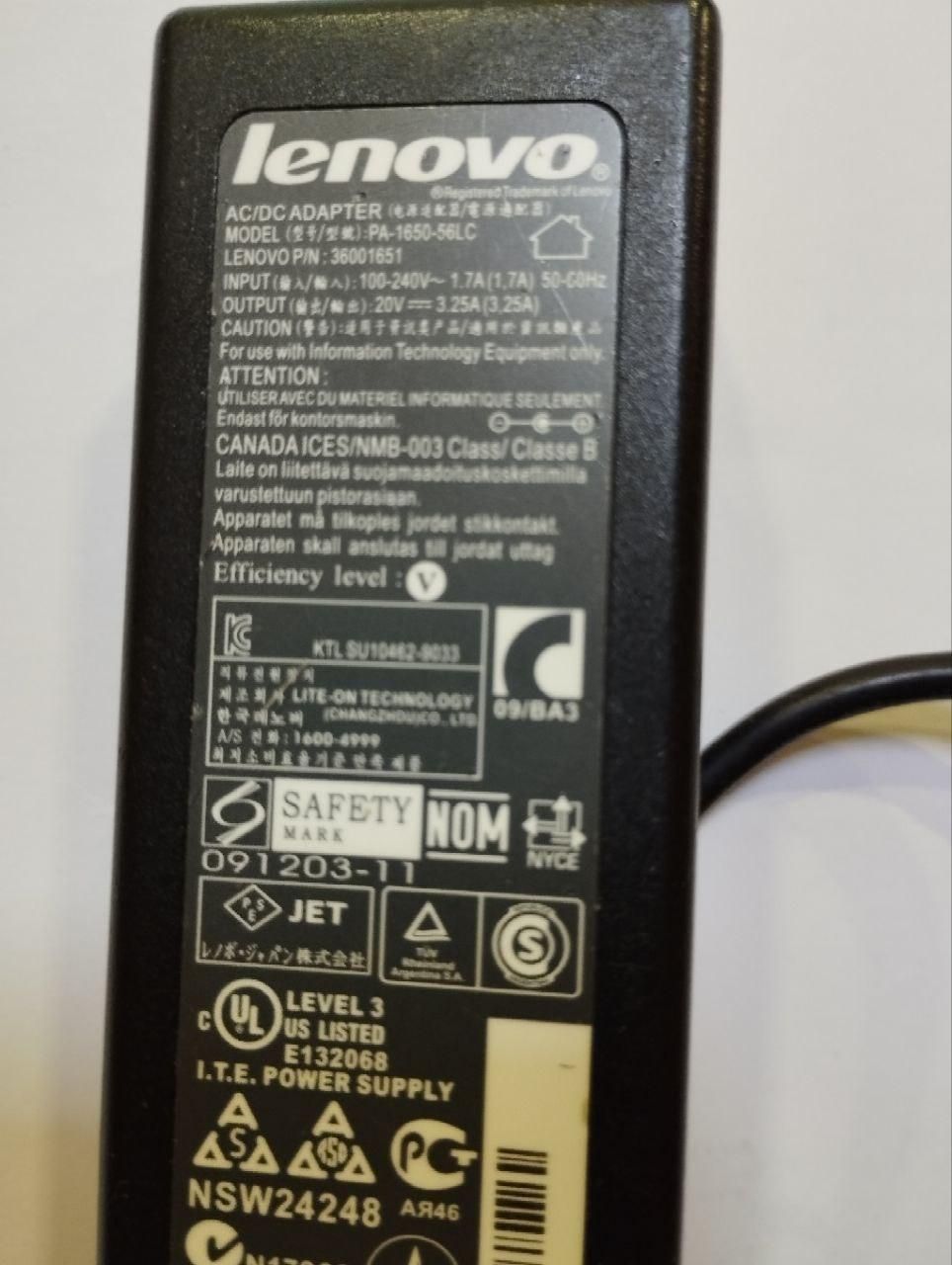 Б.У сетевой алаптер блок питания зарядка для Lenovo 65W, оригинал (36001651) + кабель 220B