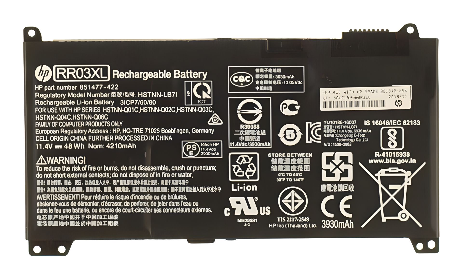 Ноутбучная батарея HP ProBook 430 G4 440 G4 450 G4 455 G4 470 G4 430 G5 440 G5 450 G5 470 G5 (RR03XL 48Wh)