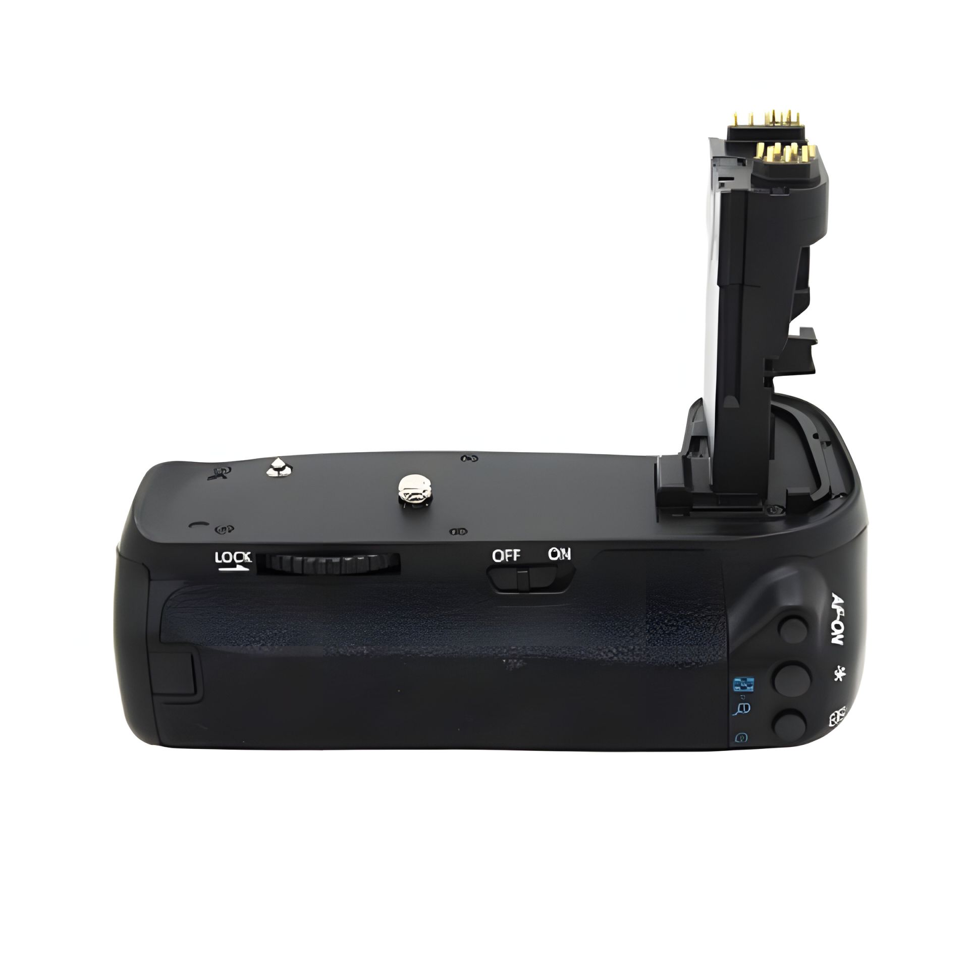 - Корпус батарейного блока выполнен из прочных композитных материалов с прорезиненными вставками, идентичными по текстуре корпусу камеры. Установленный блок выглядит как единое целое с фотоаппаратом, не нарушая эстетики устройства.