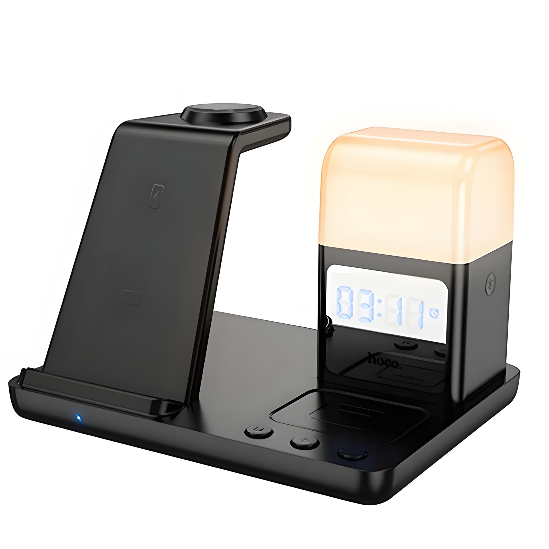 Беспроводное зарядное устройство Hoco CQ9 3в1 с часами black