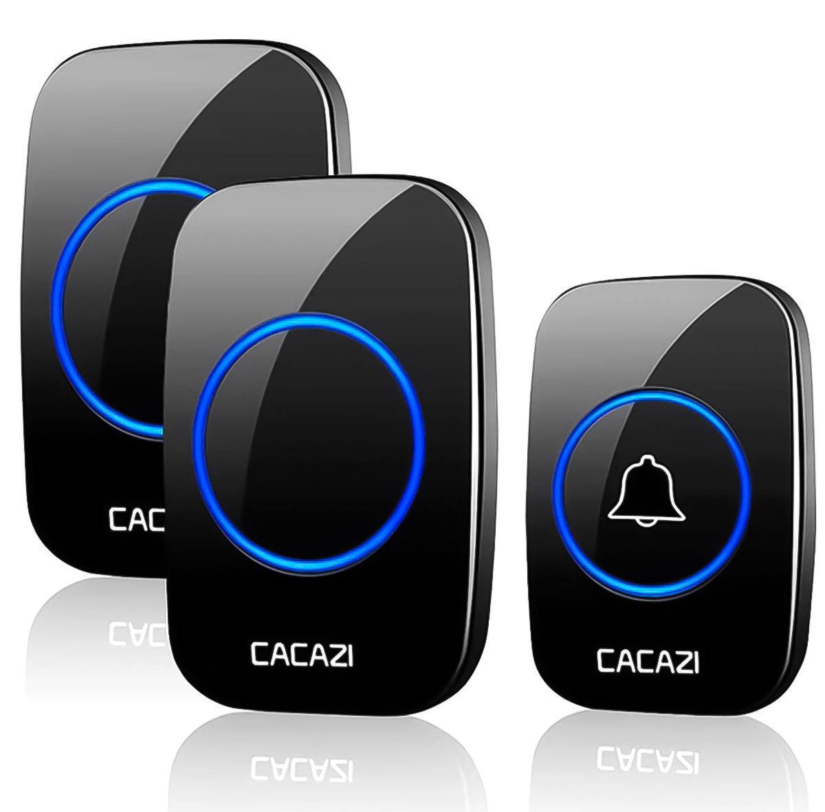 Беспроводной дверной звонок на входную дверь с 2-мя приёмниками Cacazi A12, черный
