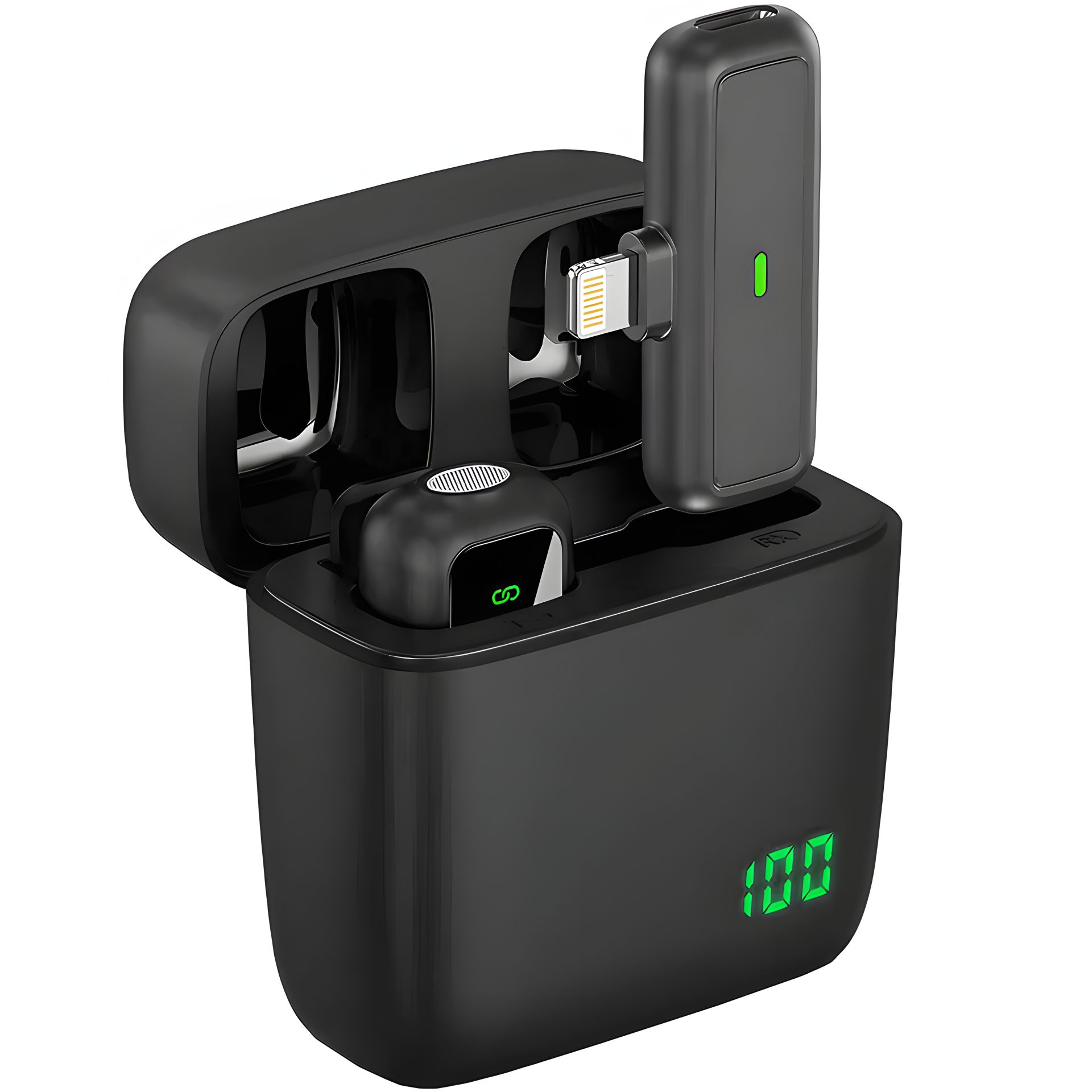- Полностью беспроводной микрофон для записи звука на iPhone/iPad с Lightning портом